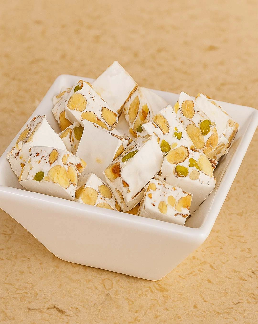 En plus d’être un dessert de fête économique et élégant, le nougat blanc est une belle idée de cadeau gourmand. Emballez-le dans du papier cristal, attachez un ruban doré et vous obtiendrez une friandise digne des plus belles confiseries. Vous pouvez même personnaliser vos nougats en ajoutant un peu de zeste d’orange, de vanille ou une pointe de fleur d’oranger pour une note parfumée unique.