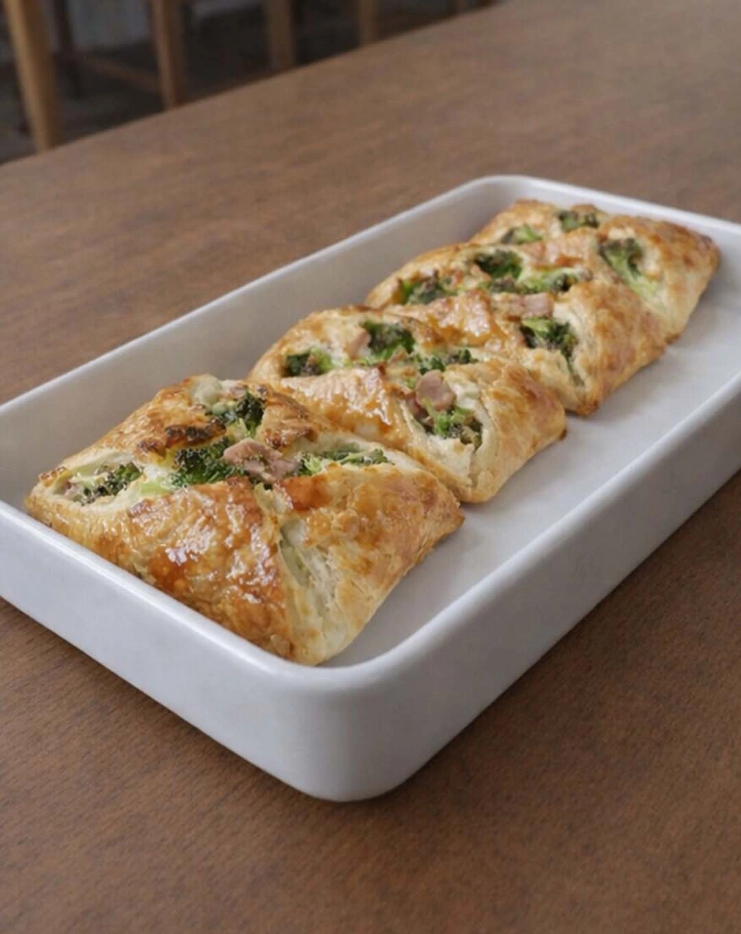 Cette recette de feuilletés salés au four associe des ingrédients du quotidien : brocoli tendre, dés de jambon savoureux, comté râpé et appareil crémeux à base d’œuf et de crème. Un équilibre parfait entre légumes et fromage, idéal pour faire manger du brocoli facilement, même aux plus réticents. Le piment d’Espelette apporte une touche subtilement relevée sans masquer les saveurs.