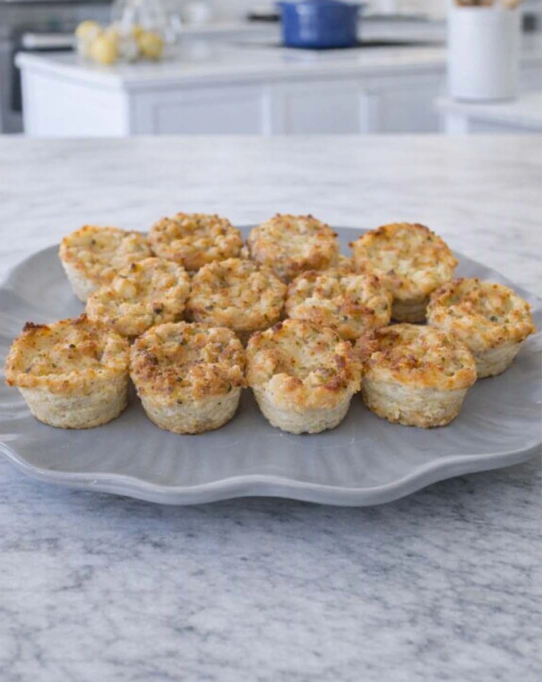 Ces petits gâteaux salés peuvent être préparés à l’avance et réchauffés quelques minutes au four à 160°C avant de servir.