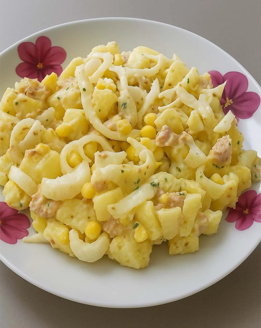 Les pommes de terre, en plus d’être délicieuses, sont une excellente source de glucides complexes, vous offrant une énergie durable tout au long de la journée. Elles sont cuites à l’eau pour conserver leurs bienfaits nutritionnels tout en étant légères. Cette salade est donc parfaite pour un déjeuner sain, mais elle peut aussi servir de plat d’accompagnement lors d’un dîner. La combinaison de la douceur des pommes de terre et du maïs avec la légère amertume des endives crée un parfait équilibre de saveurs.