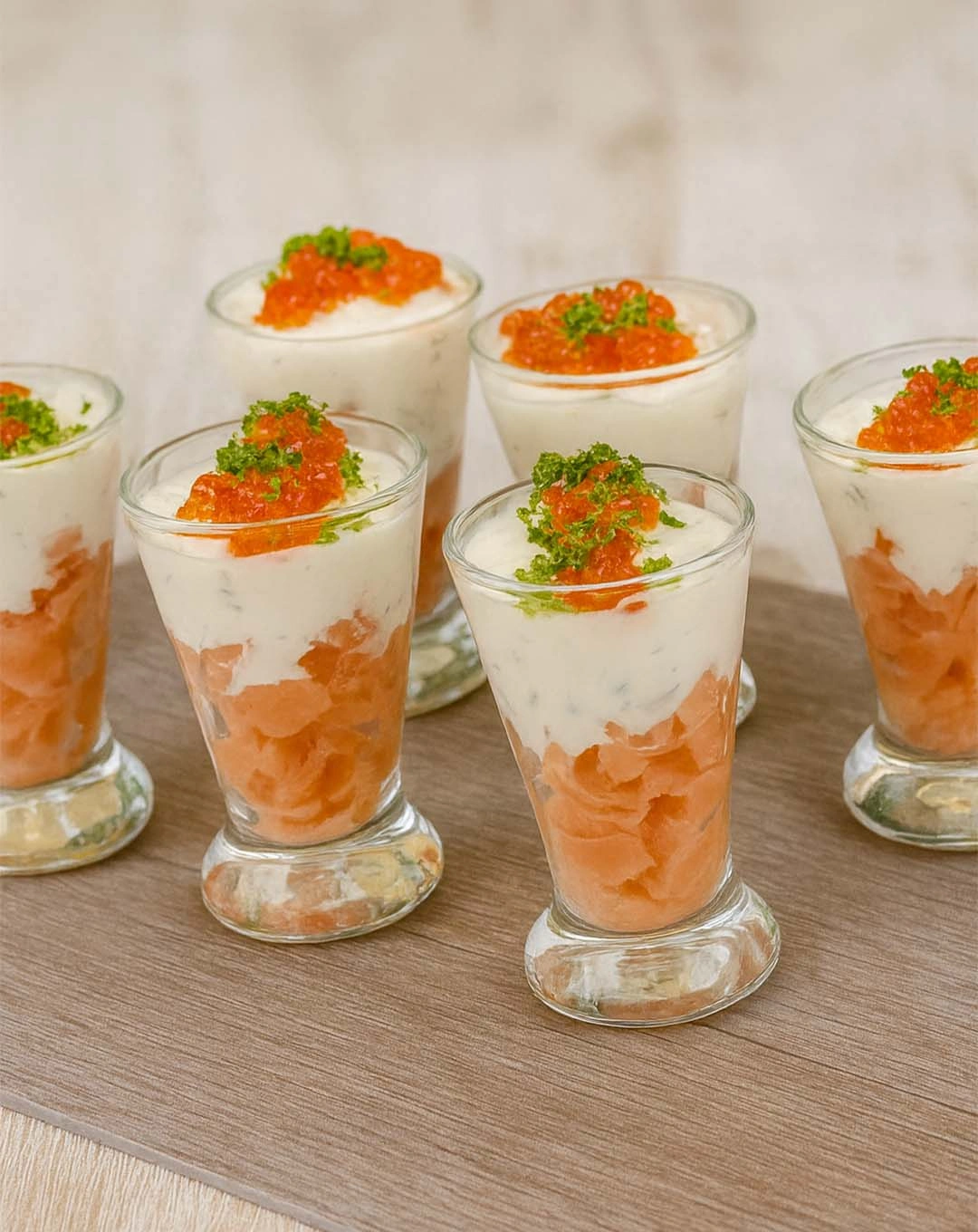 Verrines saumon fumé au fromage frais citronné et ciboulette